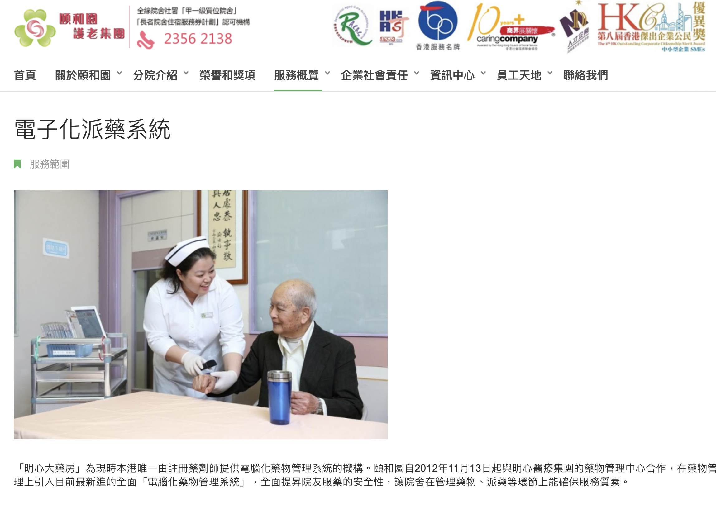 頤和園護老中心 2012年11月開始使用明心電子藥物管理系統